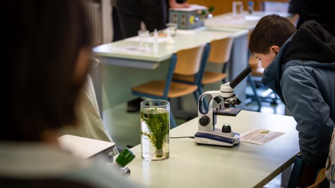 Auch der naturwissenschaftliche Bereich stieß auf großes Interesse. Besonders die Experimente zur Oberflächenspannung von Wasser sorgten für Staunen und viele „Aha-Momente“. Hier wurde eindrucksvoll deutlich, dass naturwissenschaftliches Lernen und Experimentieren in den gut bestückten Fachräumen der Fachschaft an der Georg-August-Zinn-Schule seinen Stellenwert haben.